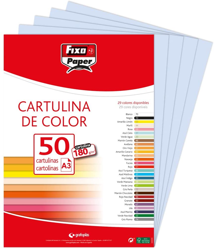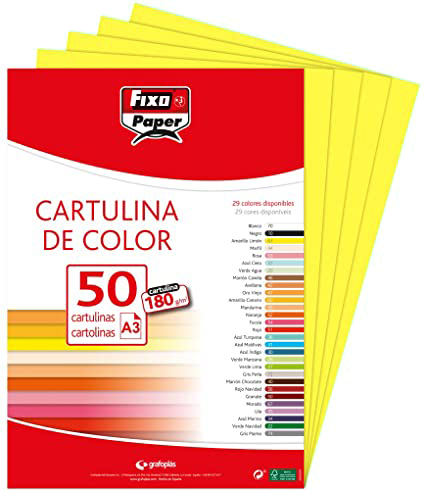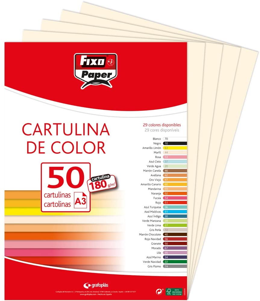 Cartulina en tamaño A-3 de 180 gr - Ligeramente satinada y coloreada en tono blanco - Se puede utilizar en cualquier tipo de impresora - Ideal para uso escolar- Marca Fixo Ref 140196