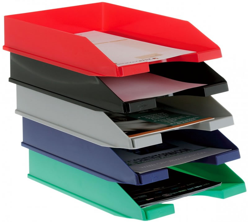 Conjunto de 3 bandejas apilables gracias a un elegante sistema de elevación en color negro - Las bandejas están fabricadas en poliestileno color cristal - Ideal para formato Folio y A-4 -Marca archivador 2000 Ref 131408